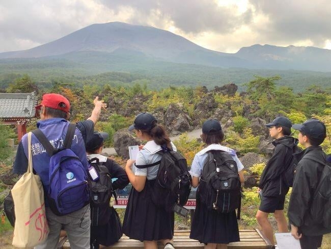 事前学習で学んだ浅間山の天明大噴火の様子を想起しながら鬼押し出し園を歩き、自然の驚異を実感しました。また、溶岩に磨かれたおいしい水や高原野菜、温泉など、火山による恩恵もあることを学ぶことができました。