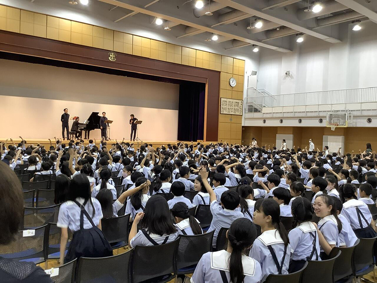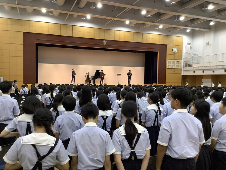 今年度はオペラユニット「カントキューブ」をお招きしました。素敵なピアノ伴奏にのせた美しい歌声を披露していただいたほか、オペラ歌手の道に進むまでのご自身の経緯や音楽に興味をもったきっかけなどもお話いただきました。会の後半では、腹式呼吸について学びました。その後、南山小の聖歌を子どもたちと一緒に歌ってくださいました。音楽の楽しさ、美しさを味わうことができました。