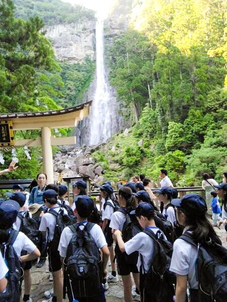 1日目は、大門坂からのごみ拾いに始まり、那智大社、青岸渡寺、那智大滝と見学しました。人の営みの素晴らしさと大自然の見事な造形に感動しました。