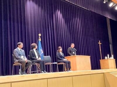 今年度は7人の教職員の方々が退任されることになりました。退任式では、4人の先生方からお別れの言葉をいただきました。先生方のこれからのご活躍をお祈りしております。