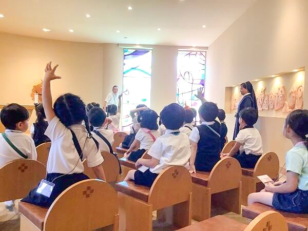 来年度の本校受験希望者対象の学校説明会を行いました。保護者の皆様には、本校の理念や概要を伝えさせていただきました。また、入学希望の幼児に対しては、体験授業を行いました。読み聞かせ、プラネタリウム、英語の授業、聖堂について、色塗り体験をしていただきました。
