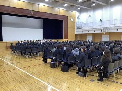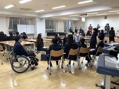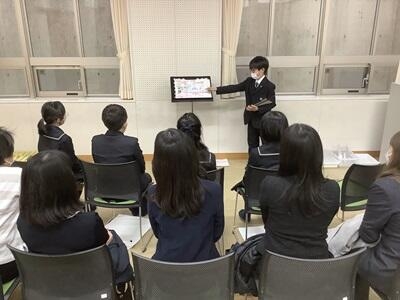 2学期の後半から福祉とは何かを考えてきました。11月には福祉体験教室を実施してきました。その後、体験教室を経て学んだことや各自で調べ考えたこと、深めたことを、発表しました。お世話になった福祉の講師の先生方25名と保護者の方々に聞いていただきました。一人ひとり、最後のまとめでは、福祉に対する自分の決意を述べていました。自分の福祉への関わり方や「真のリーダー」について考える機会となりました。