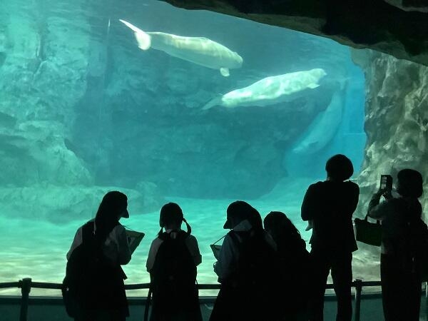 2年生は、生活科単元「いきものと ともだち」「みんながつかう まちのしせつ」の学習の一環として、地下鉄を利用して名古屋港水族館見学をしました。水族館の見学でも地下鉄移動の際にもマナーよく行動することができました。イルカショーを楽しみ、ペンギンやシャチ、カメなど、子どもたちはお気に入りの生き物を見つけ、スケッチをしたりクイズを解いたりしました。楽しみながら知的好奇心を満たすことができた1日となりました。