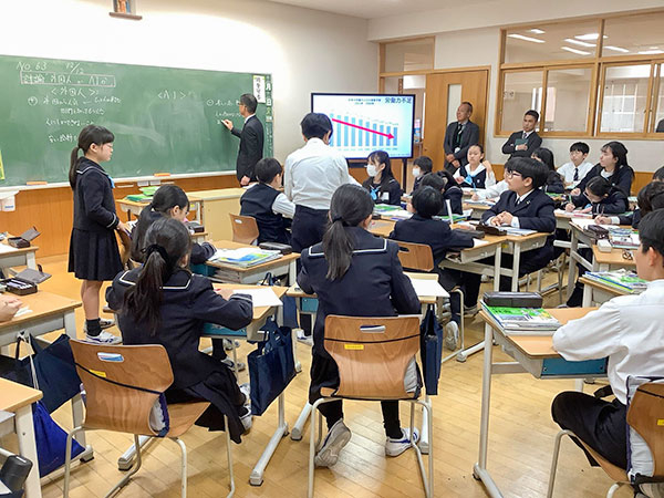 ご来校された先生からは、子どもの発言の背景にある「その子らしさ」と「社会科らしさ」を丁寧に見取り、発言同士をつなぐ話題設定や問い返しによって、学び合いをさらに深めていくことの大切さについてご助言をいただきました。