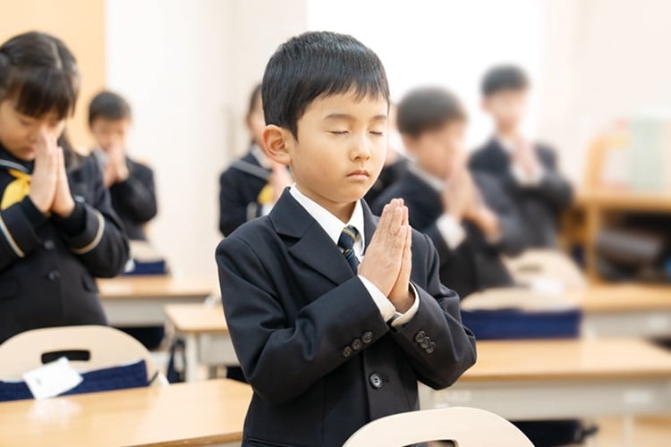 知的にも精神的にも豊かな心を育むことを目的として、宗教教育を行っています。聖歌を歌ったり、聖書のお話に親しんだりするなかで、神さまからの無条件の愛に基づく「隣人愛」の精神を学ぶとともに、他宗教への尊敬の心も育てていきます。